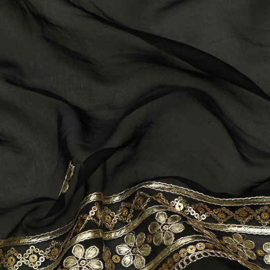 Black Color Organza Border Embroidery Fabric