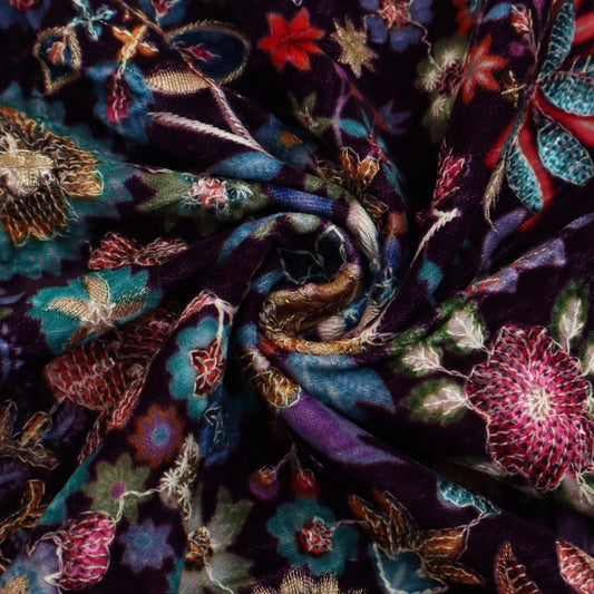 Maroon Color Velvet Embroidery Fabric