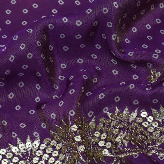 Purple Color Tissue Print Border Embroidery Fabric