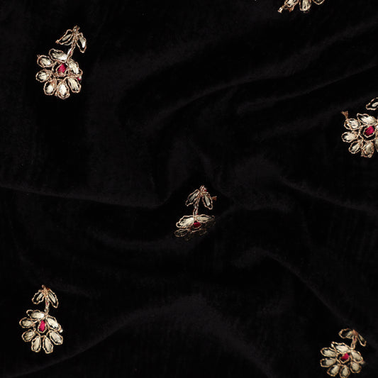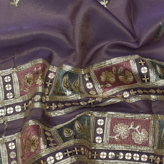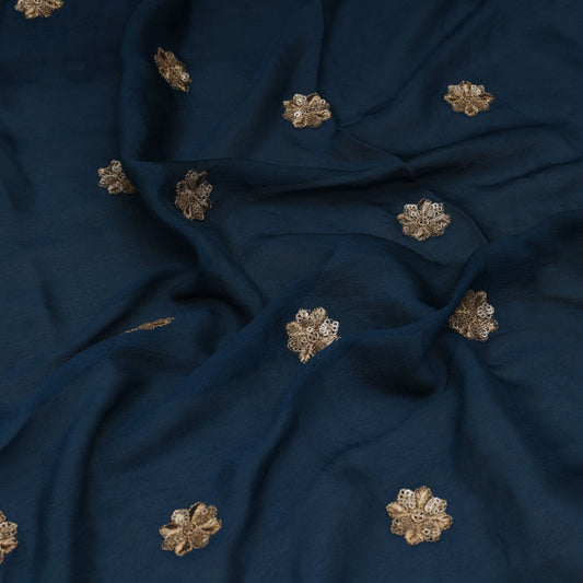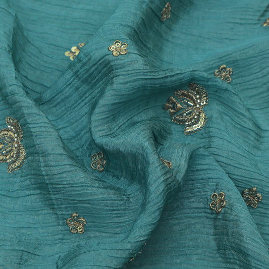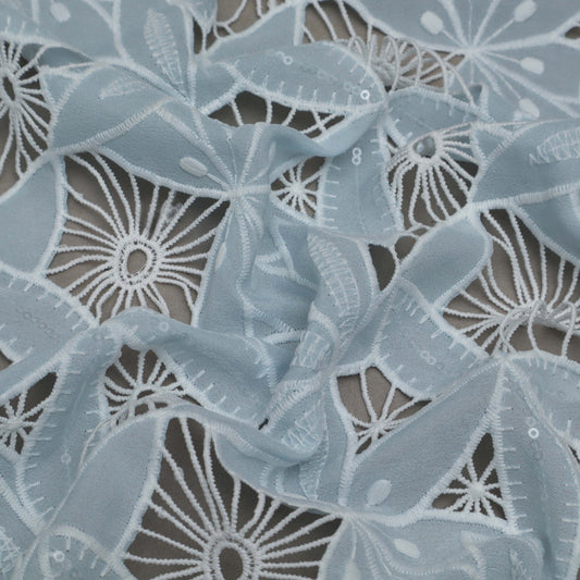 Sky Blue Color Crepe Chikan Embroidery Fabric