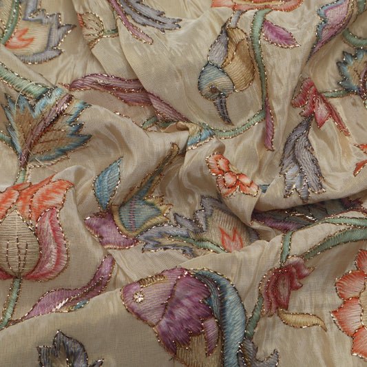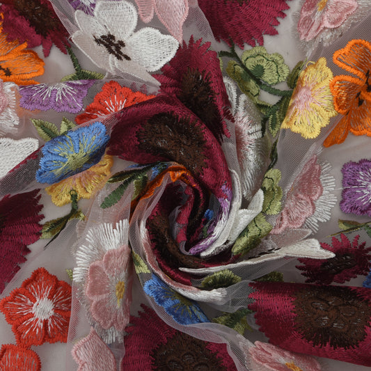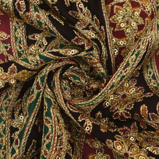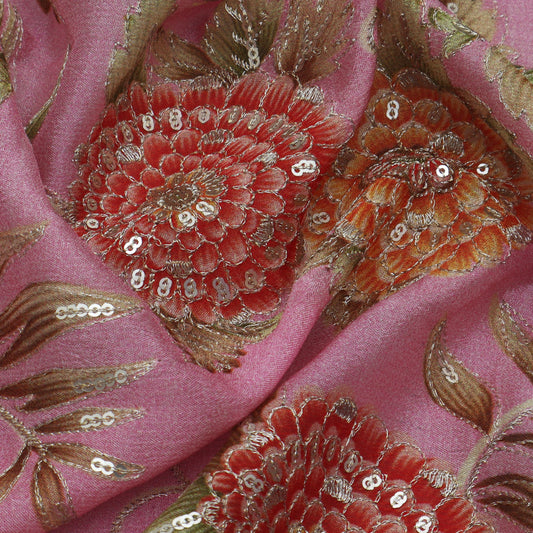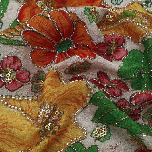 Multi-Colored Chinnon Position Print Sequence Embroidery Fabric