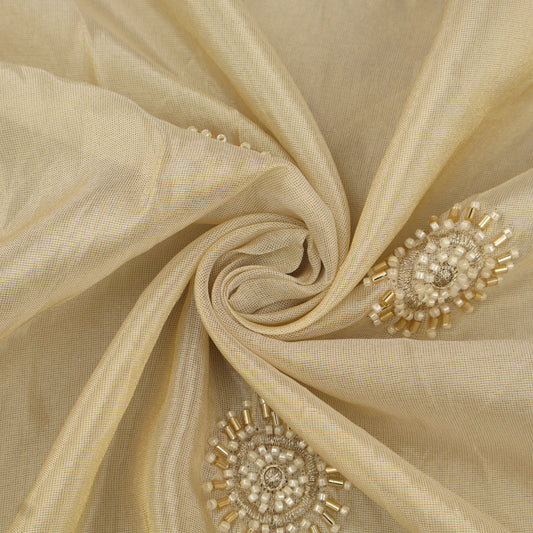White Color Plazo Cotton Chikan Embroidery Fabric