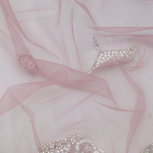 Pale Pink Color Cotton Chikan Embroidery Fabric
