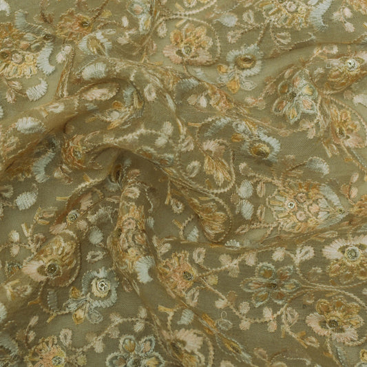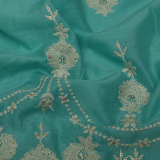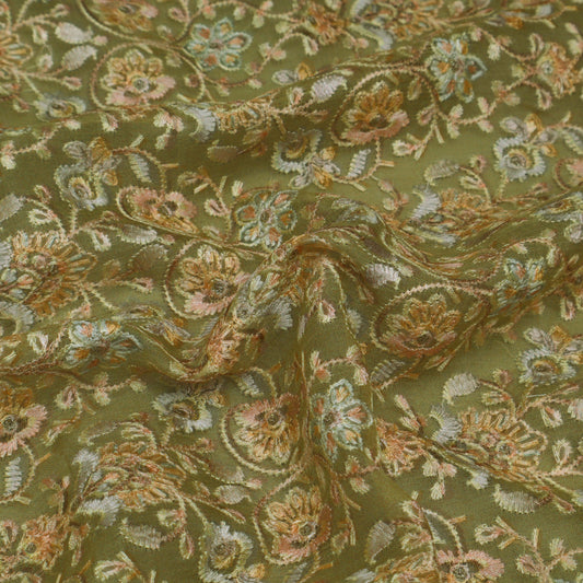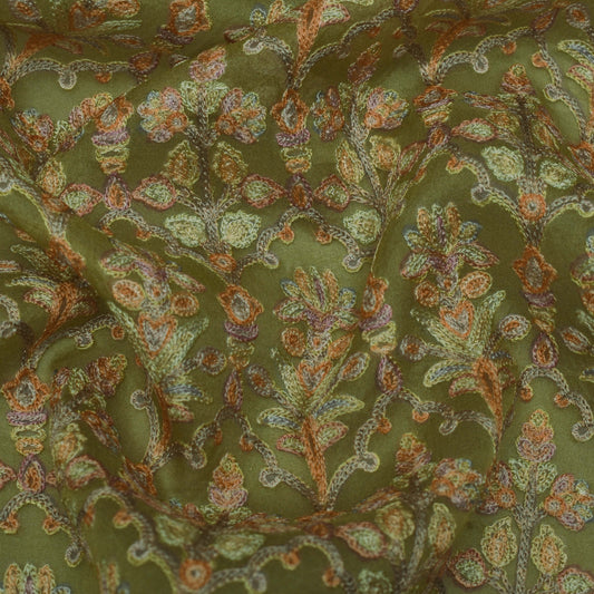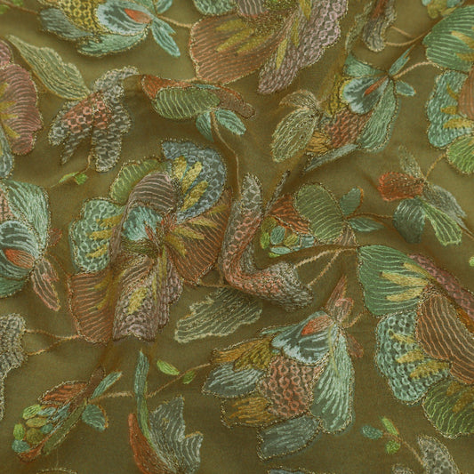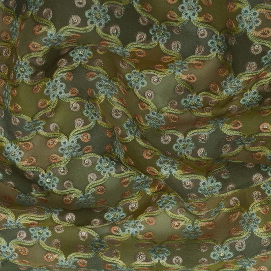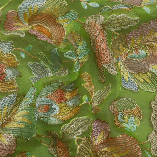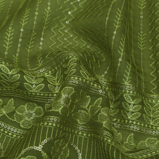 Mehndi Green Color Organza Embroidery Designer Fabric