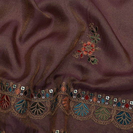 Mauve Color Nokia Silk Embroidery Fabric (Cut Pieces 3Mtr)