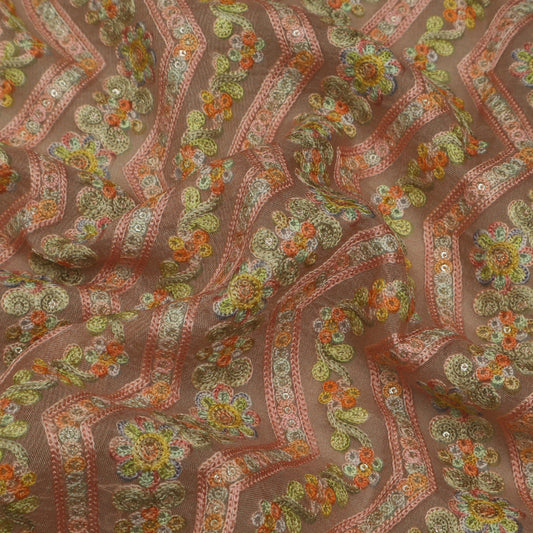 Onion Color Tissue Booti Embroidery Fabric (Cut Pieces 1Mtr)