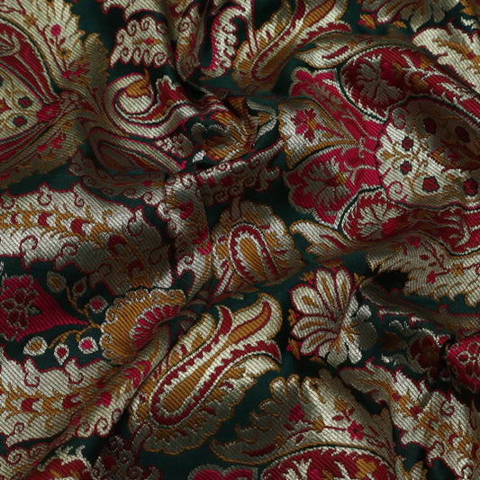 Bottle Green Color KimKhab Brocade Fabric (Cut Pieces 3Mtr)