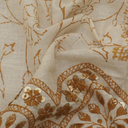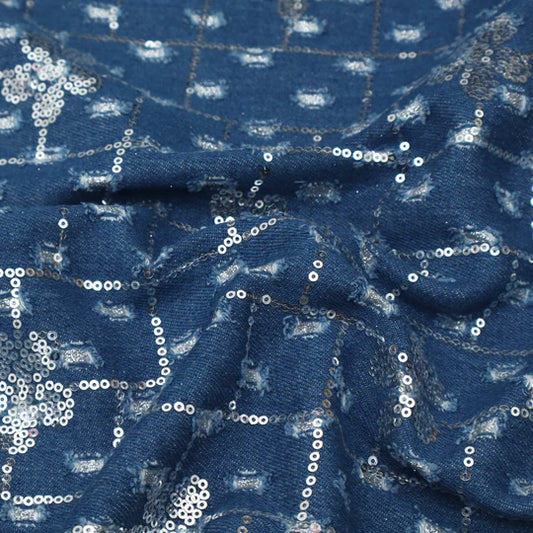 Denim Sequins Embroidery Fabric (Cut Pieces 1Mtr)