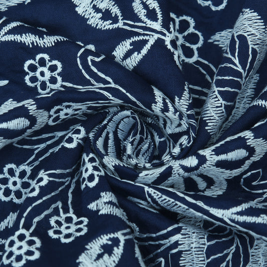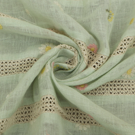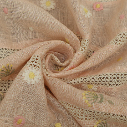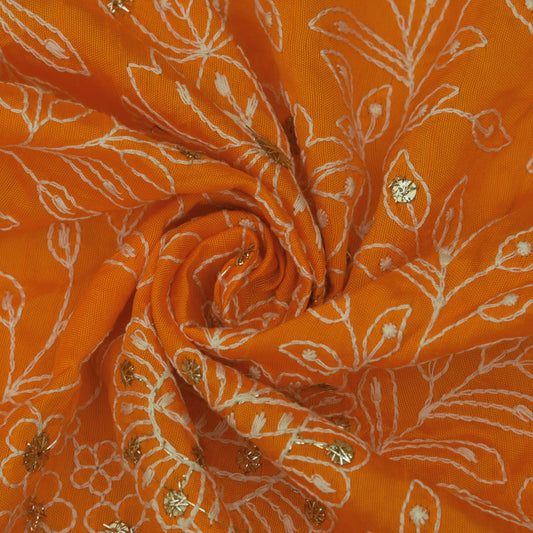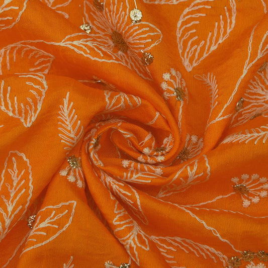 Yellow Color Kora Silk Chanderi Embroidery Fabric