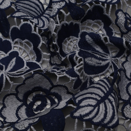 Blue Color Dola Silk Jaquard Floral Print Fabric