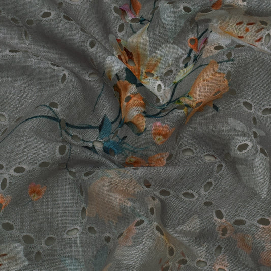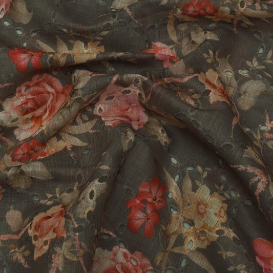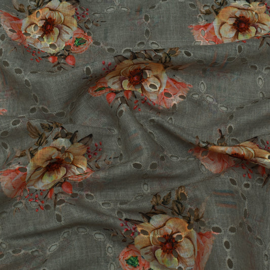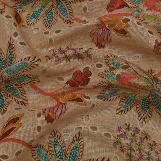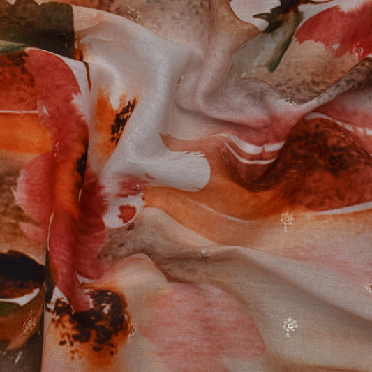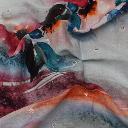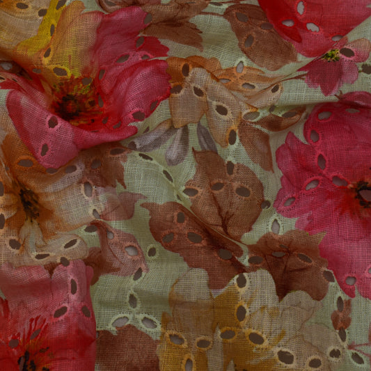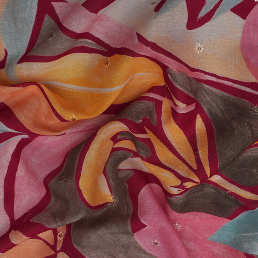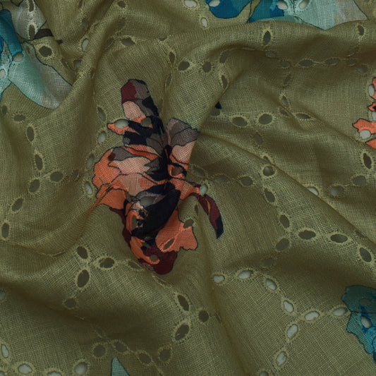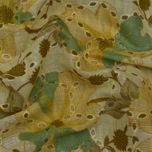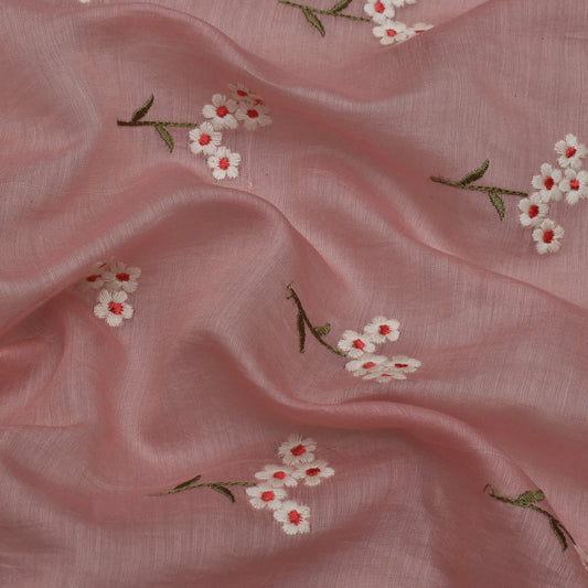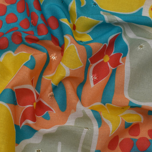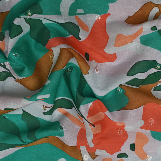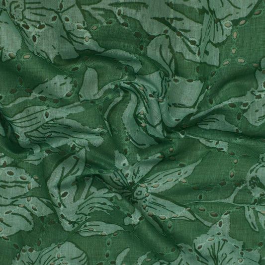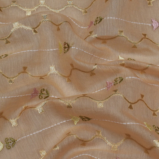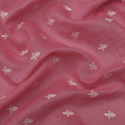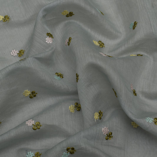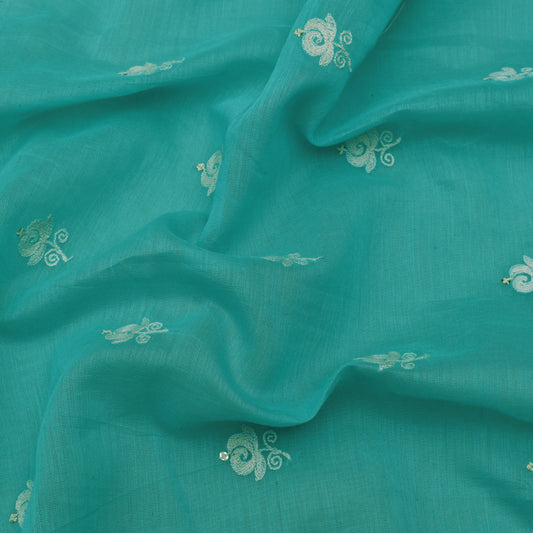 Rama Green Color Chanderi Booti Embroidery Fabric