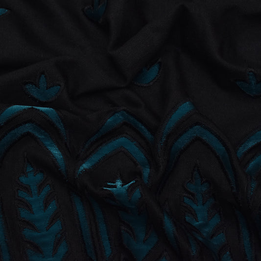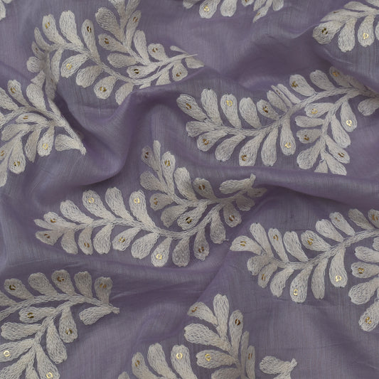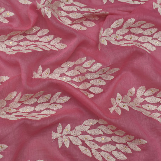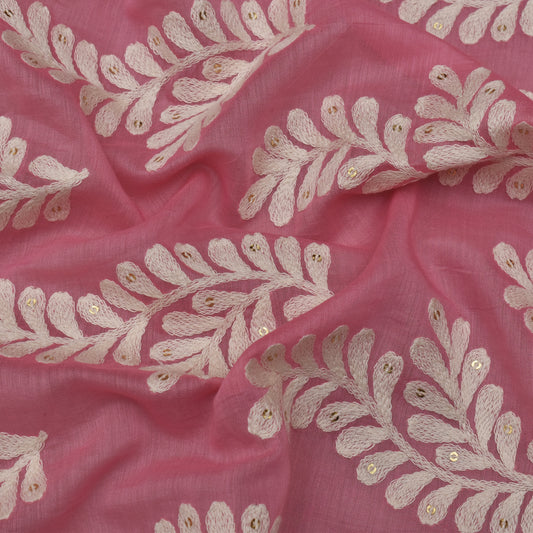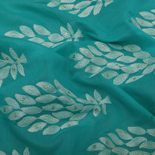 Rama Green Color Chanderi Silk Embroidery Fabric