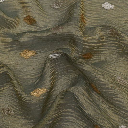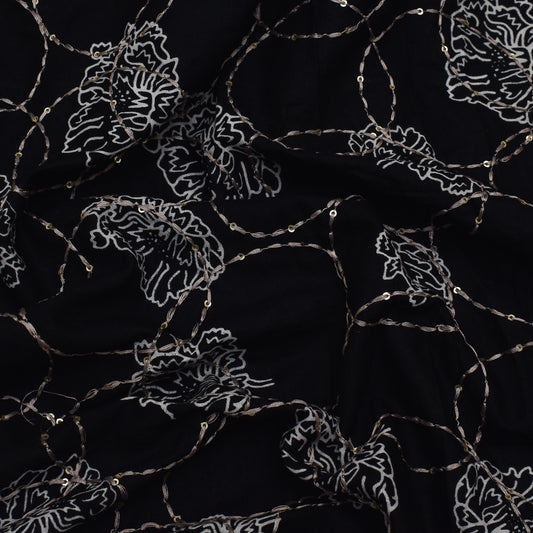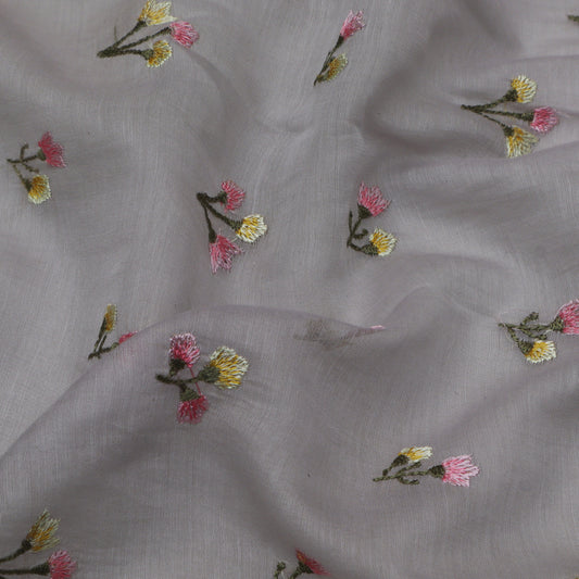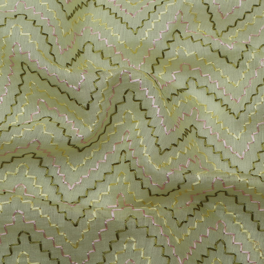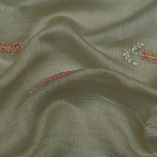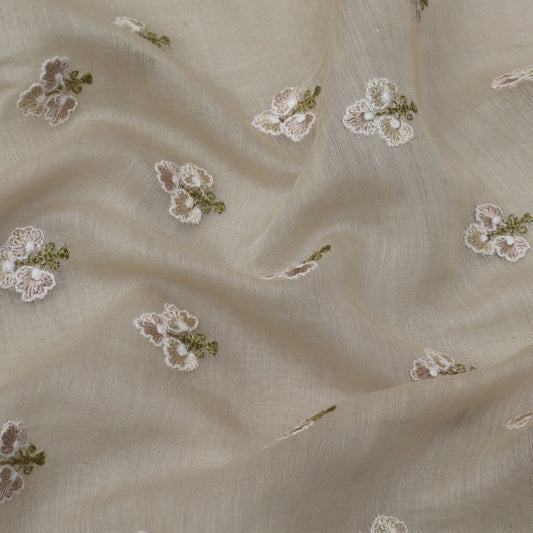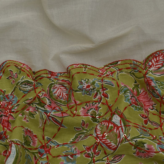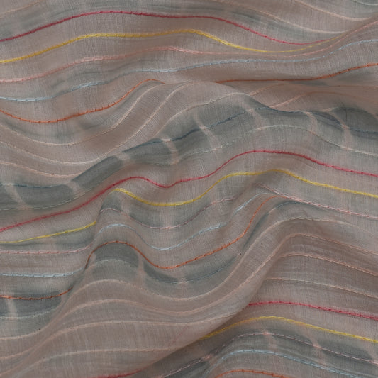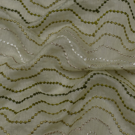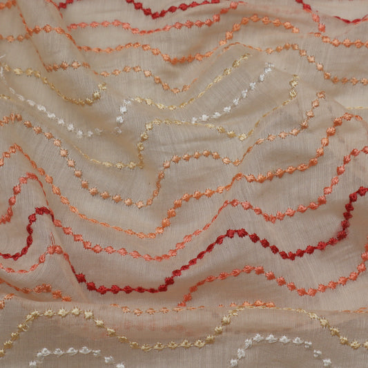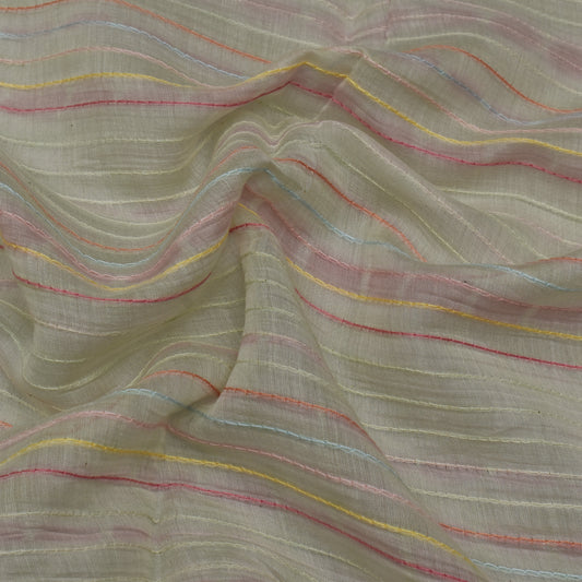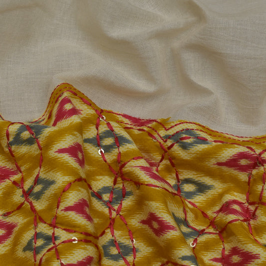 Off White Color Chanderi Kantha Work Tie And Dye Fabric