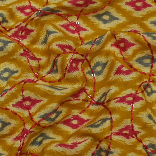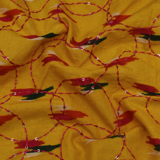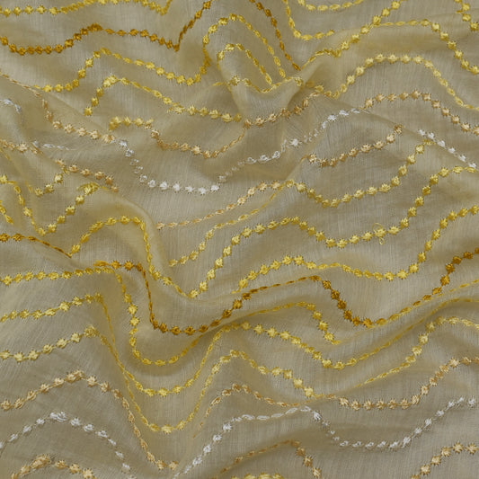 Yellow Color Chanderi Kantha Work Tie And Dye Fabric