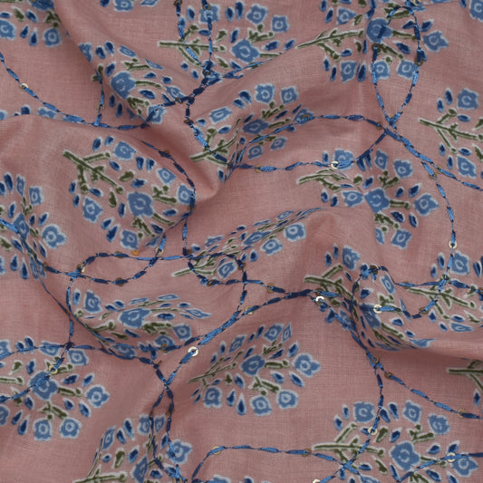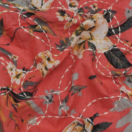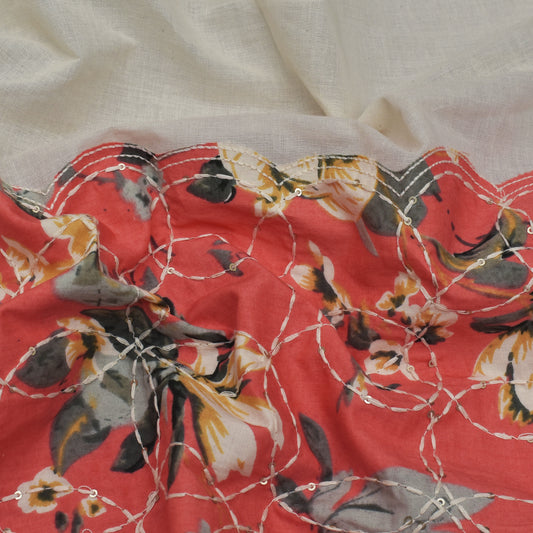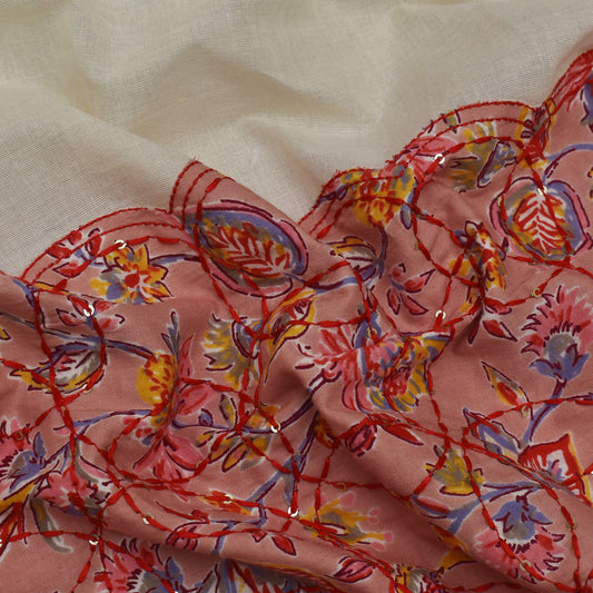 Peach Color Chanderi Kantha Work Tie And Dye Fabric