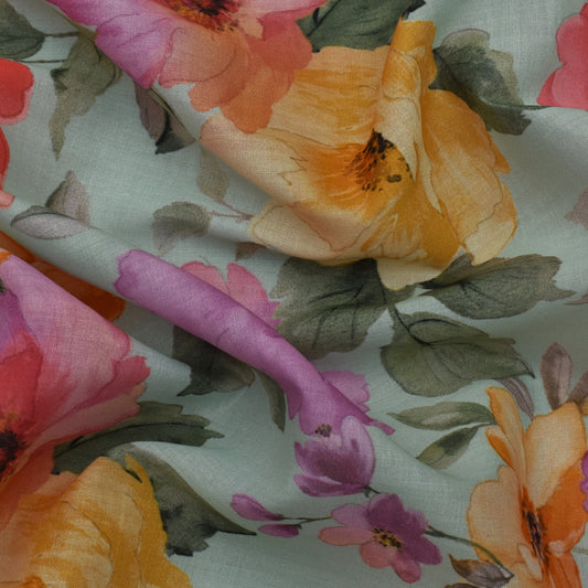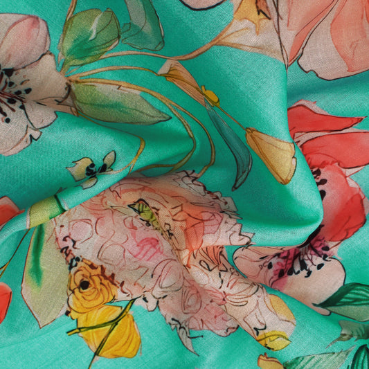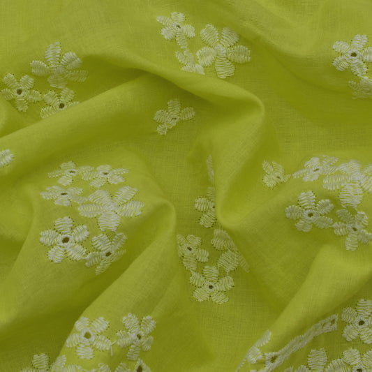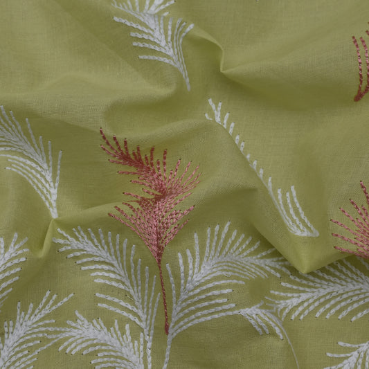 Pista Green Color Cotton Plazo Embroidery Fabric