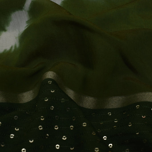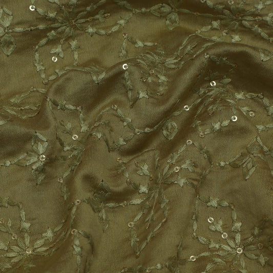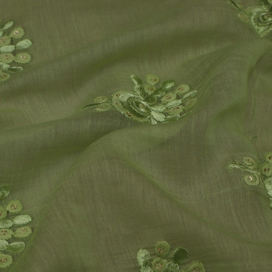 Mehendi Green Color Chanderi Embroidery Fabric