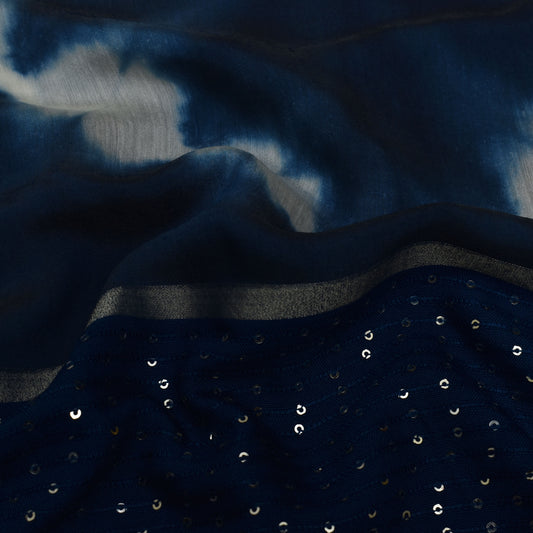 Multi Color Chanderi Tie & Die Border Embroidery Fabric