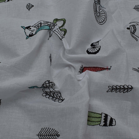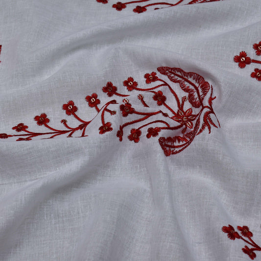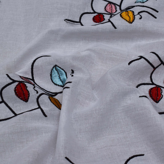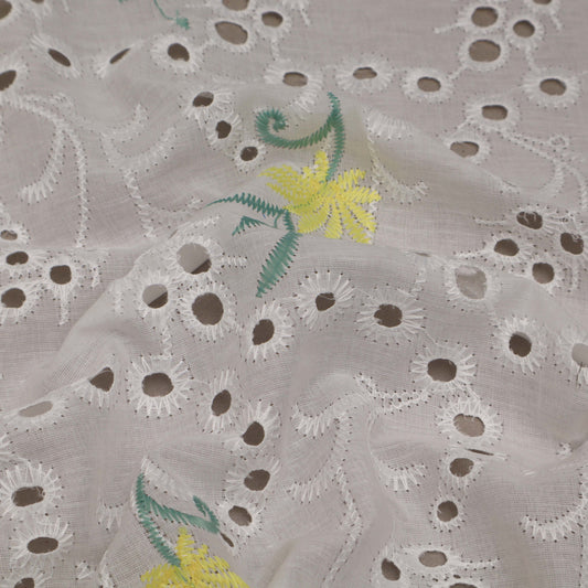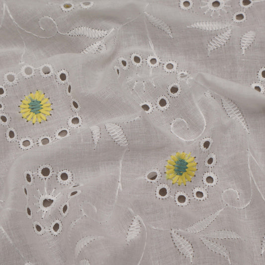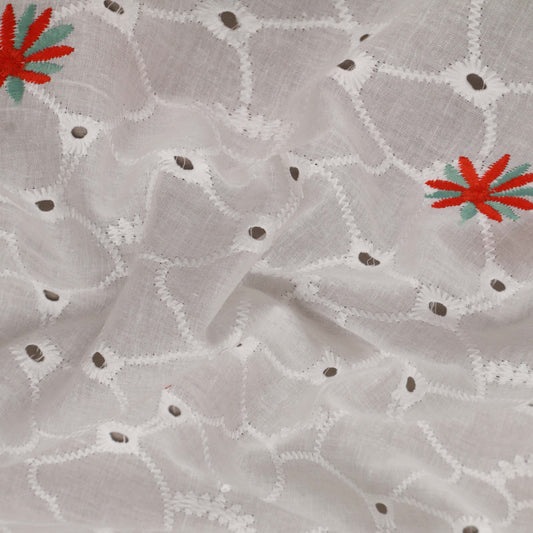 White Color Cotton Embroidery Fabric