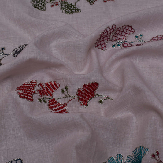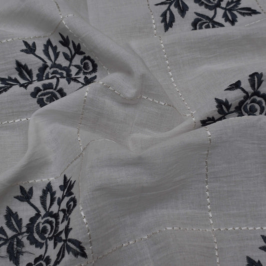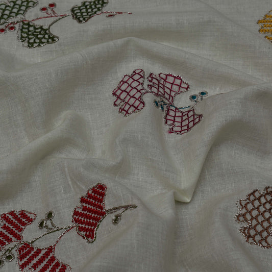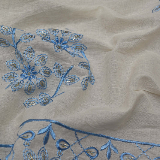 Off White Color Cotton Embroidery Fabric