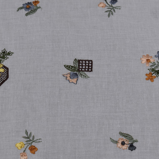 Sold outGrey Color Cotton Embroidery Fabric