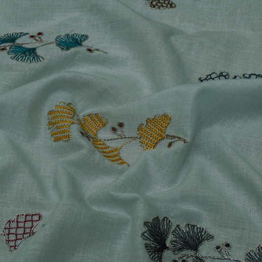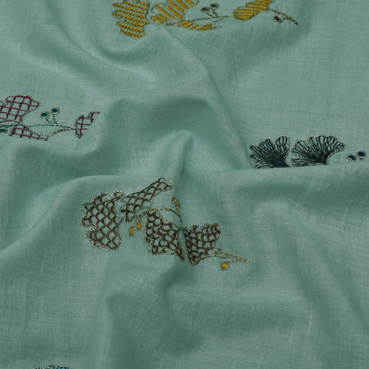 Sea Green Color Cotton Embroidery Fabric