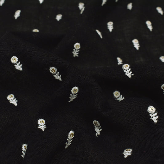 Black Color Cotton Embroidery Fabric