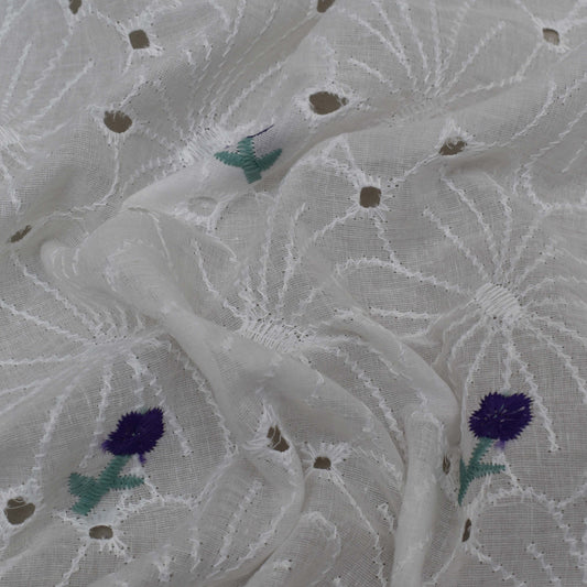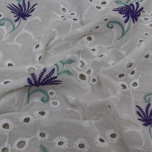Sold outWhite Color Cotton Embroidery Fabric