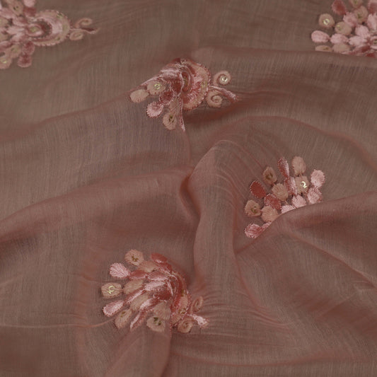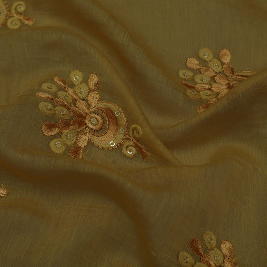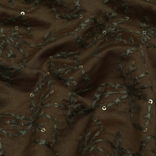 Brown Color Chanderi Embroidery Fabric