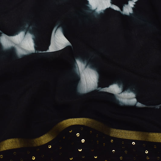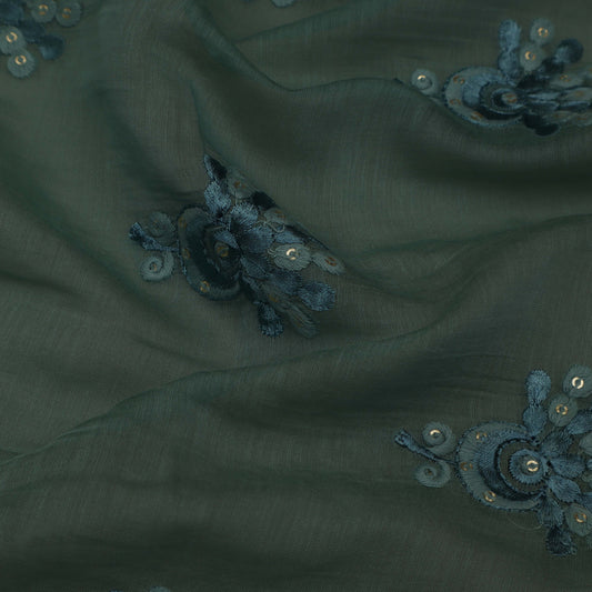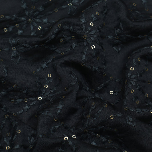 Black Color Chanderi Embroidery Fabric