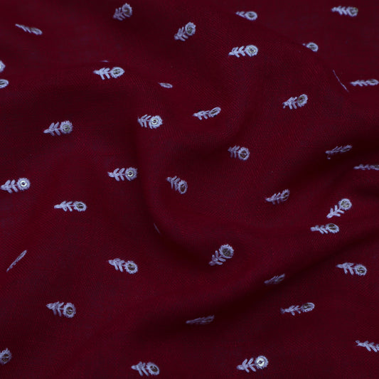 Sold outMaroon Color Linen Booti Fabric
