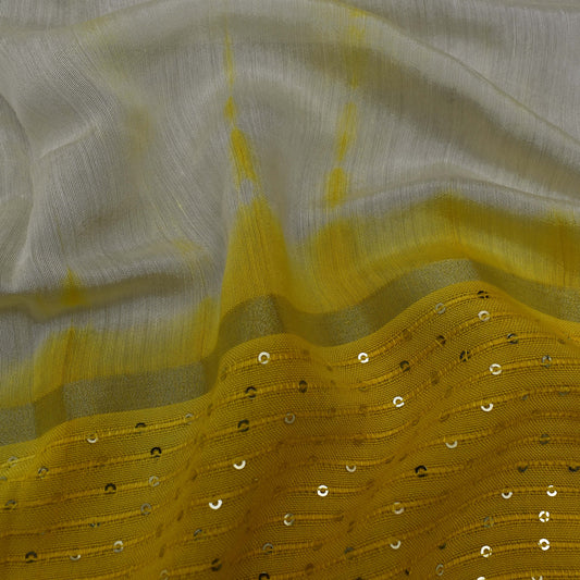 Mustard Color Chanderi Embroidery Fabric