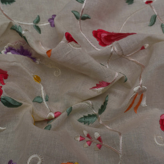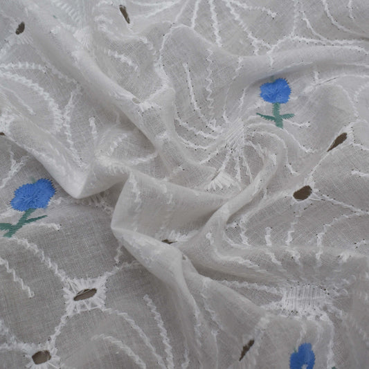 White Color Cotton Chikan Embroidery Fabric