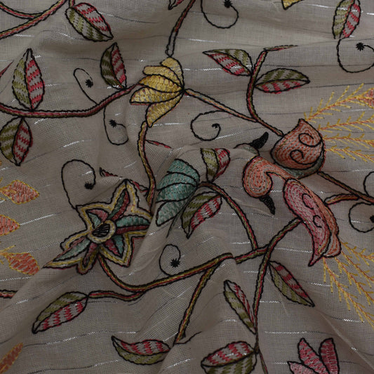 Beige Color Chanderi Embroidery Fabric
