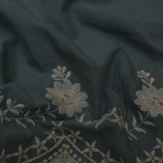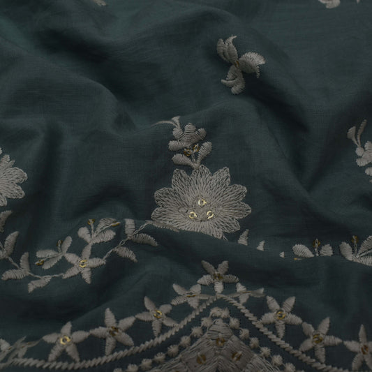 Sea Green Color Chanderi Embroidery Fabric