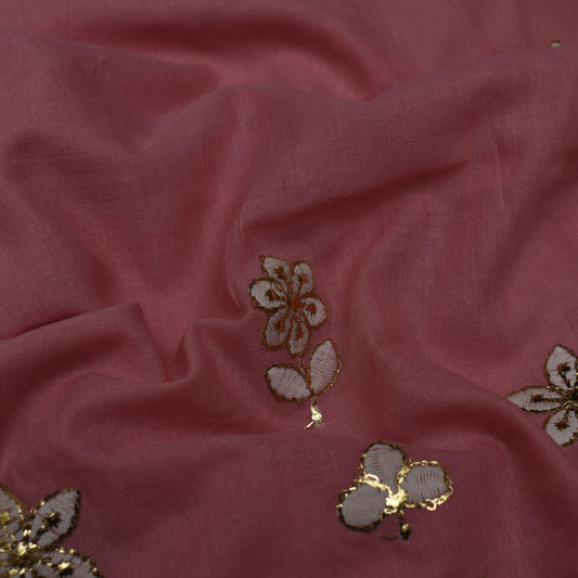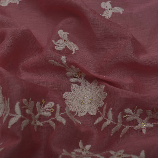 Pink Color Nokia Silk Embroidery Fabric