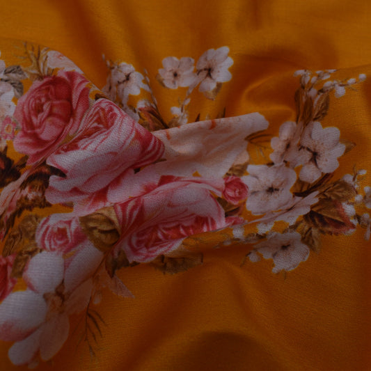 Orange Color Glace Cotton Print Fabric