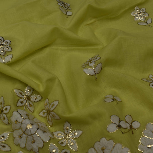 Yellow Color Chanderi Embroidery Fabric