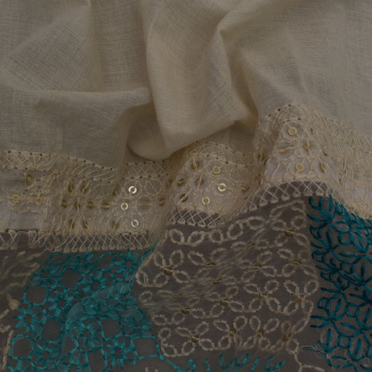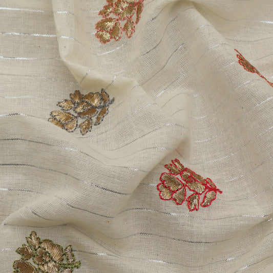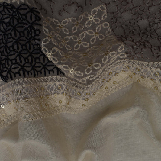 Off White Color Kora Cotton Embroidery Fabric