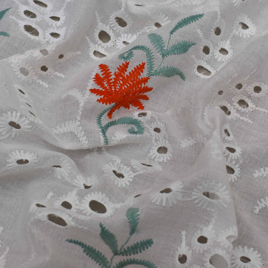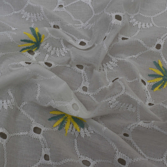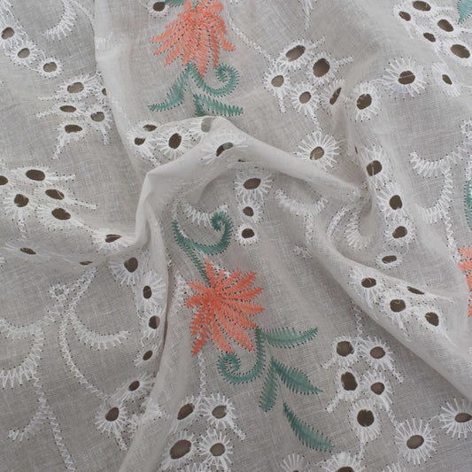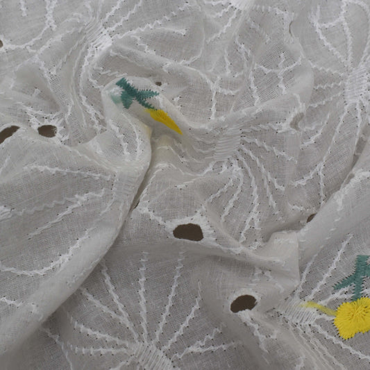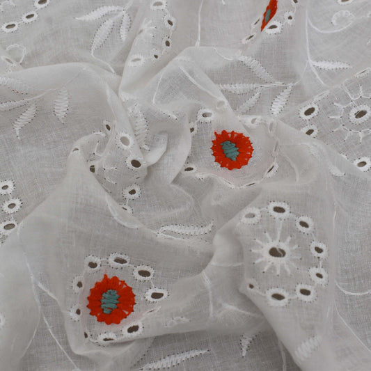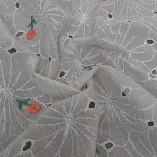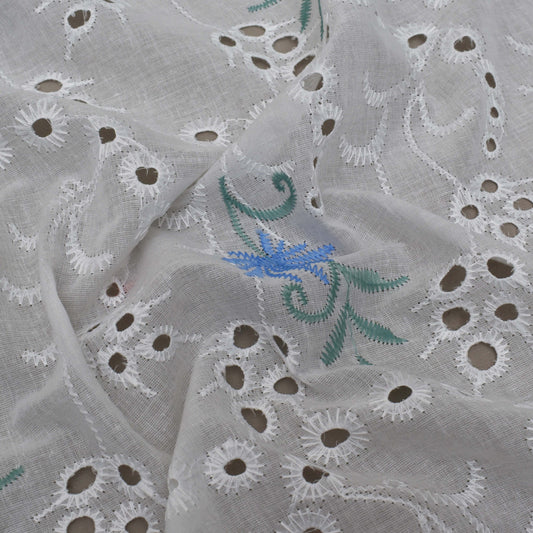 Sold outWhite Color Cotton Embroidery Fabric