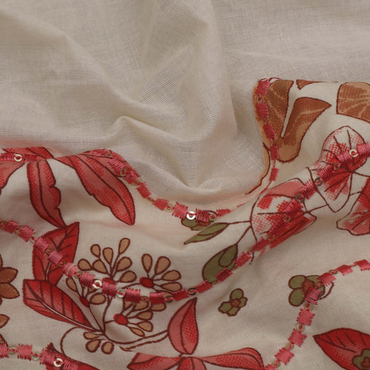 Multi Colored Kora Cotton Print Embroidery Fabric