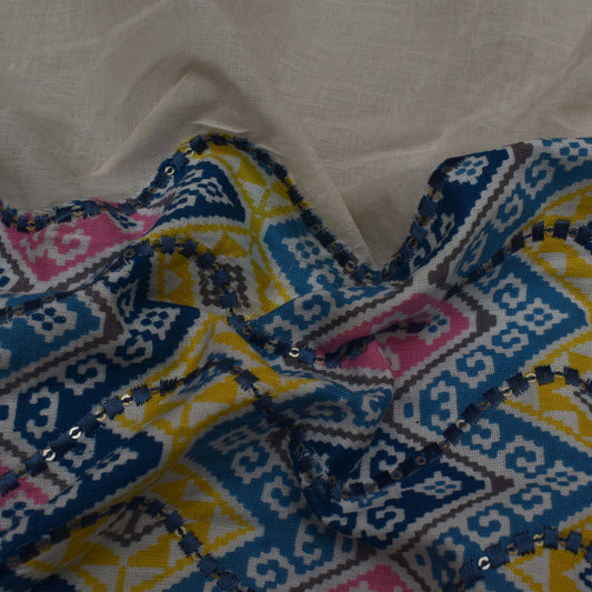 Multi Colored Cotton Chikan Border Print Embroidery Fabric