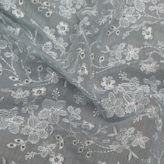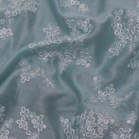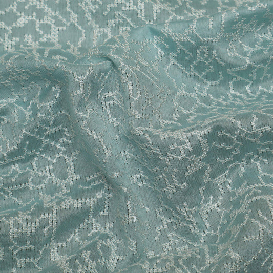 Sky Blue Color Chanderi Check Embroidery Fabric