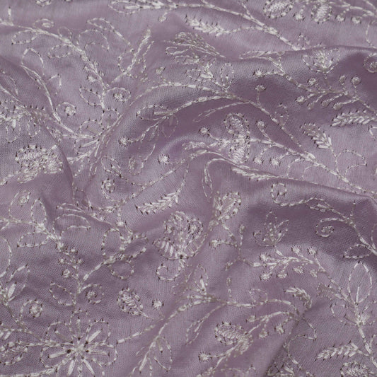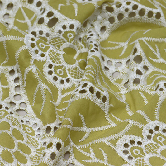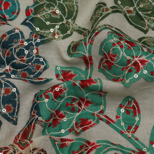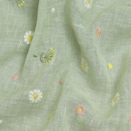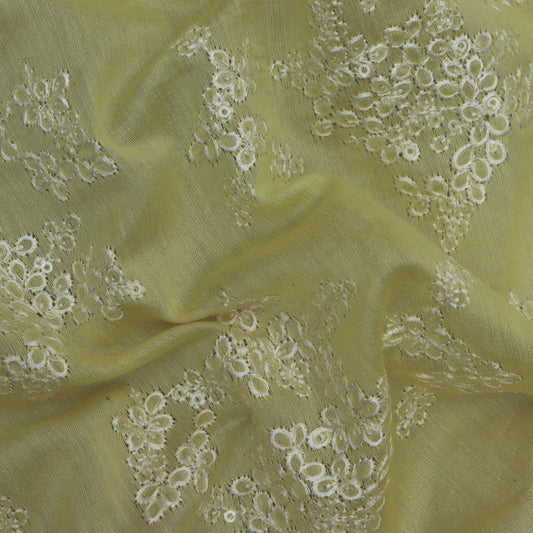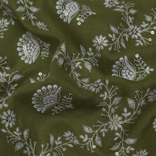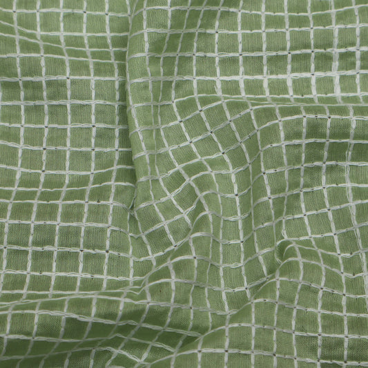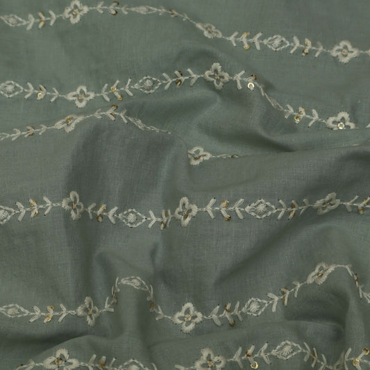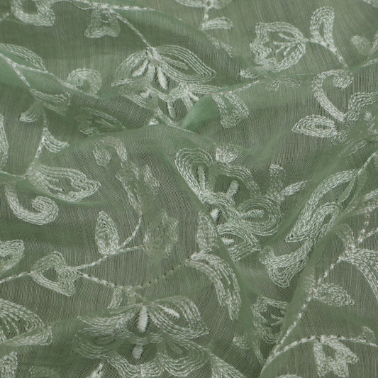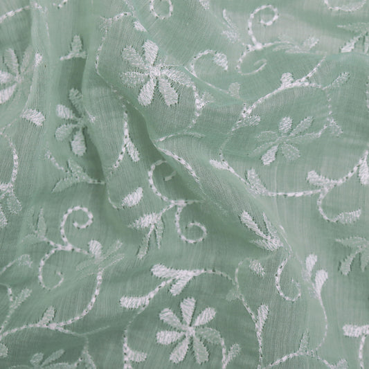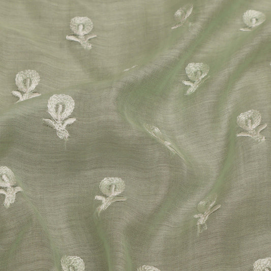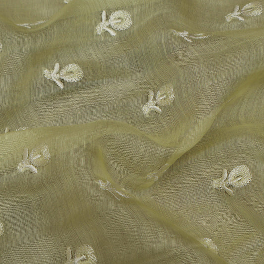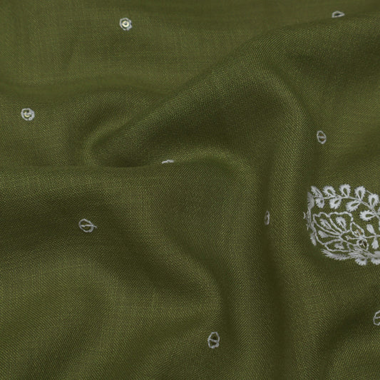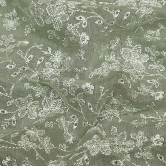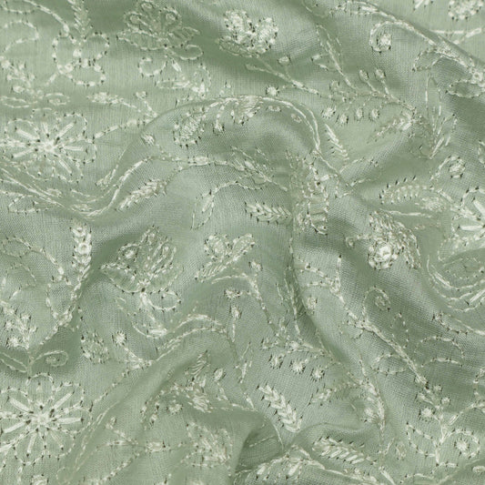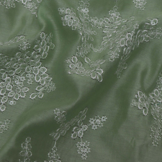 Mehndi Green Color Cotton Chikan Embroidery Fabric