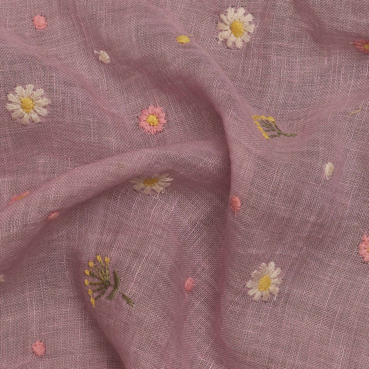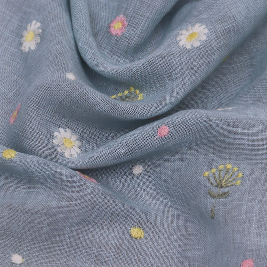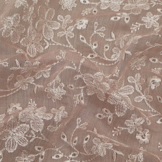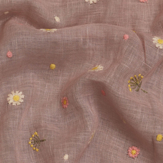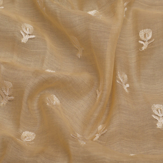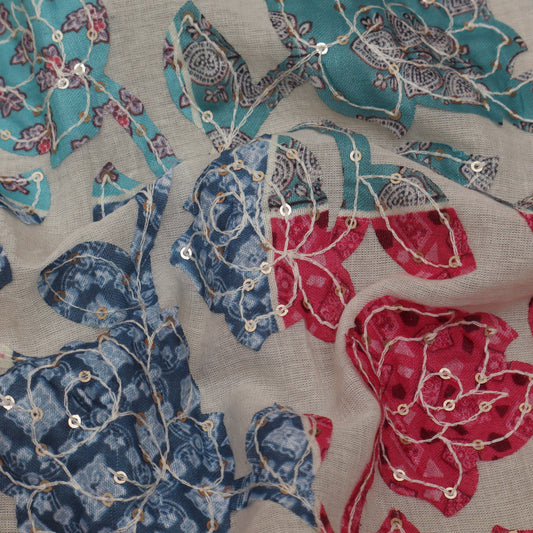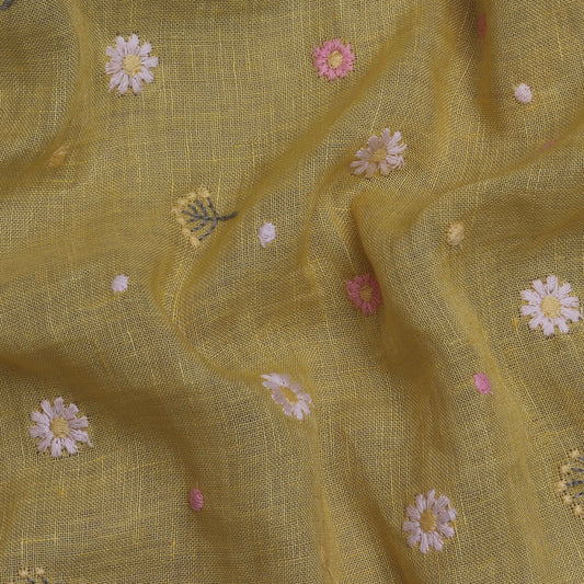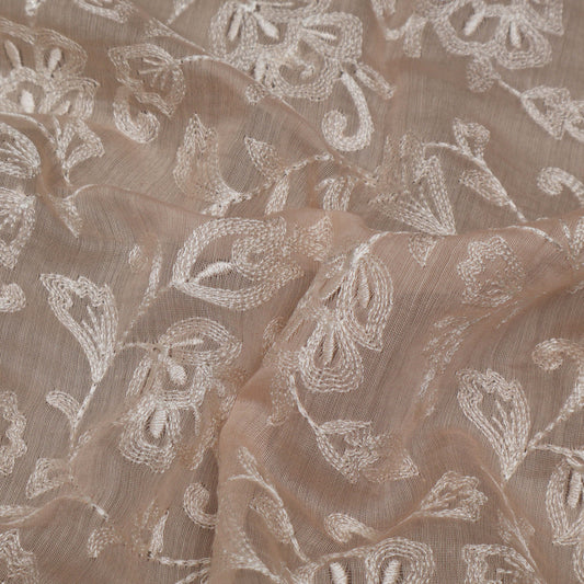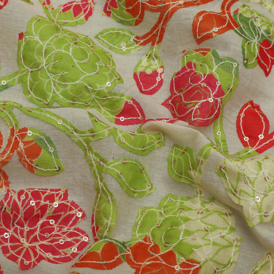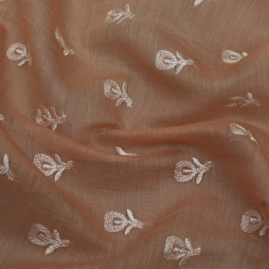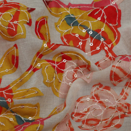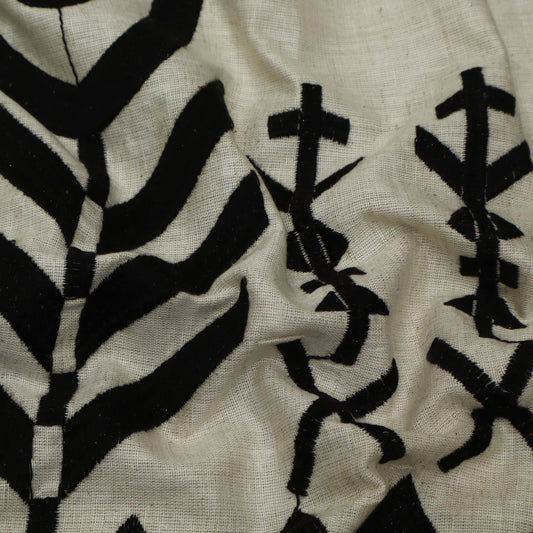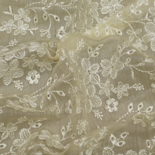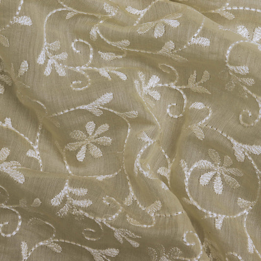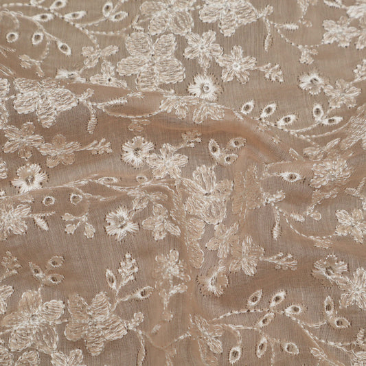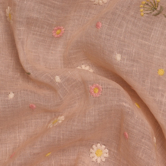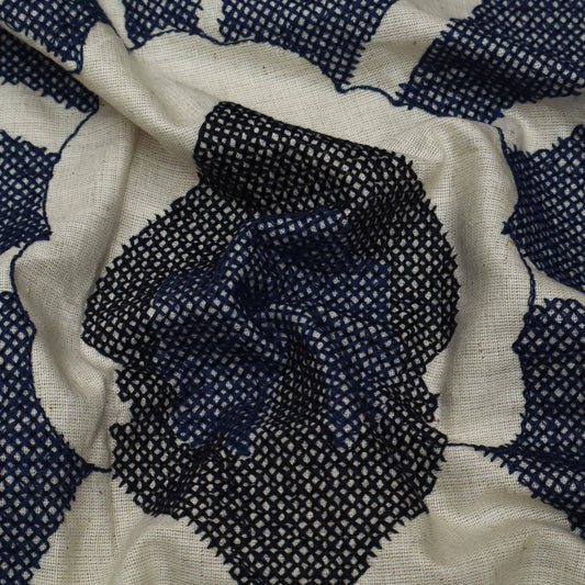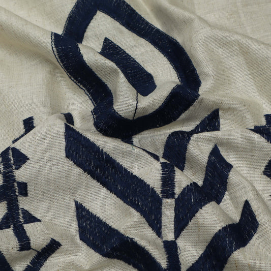 Off White Color Flex Cotton Linen Embroidery Fabric