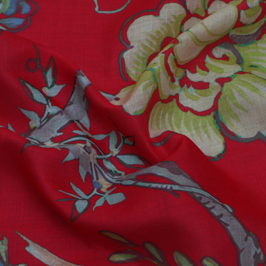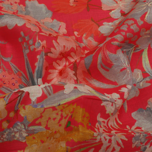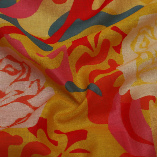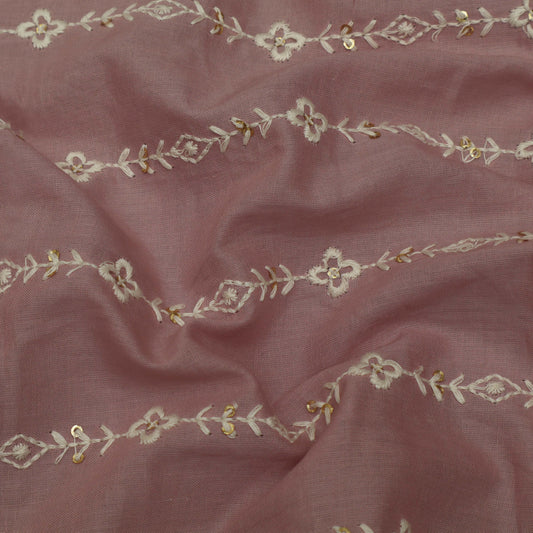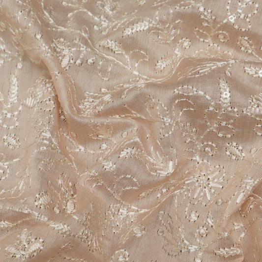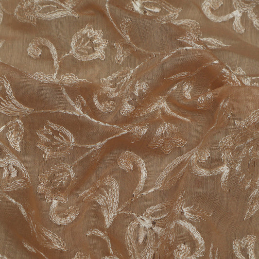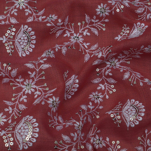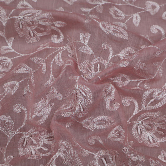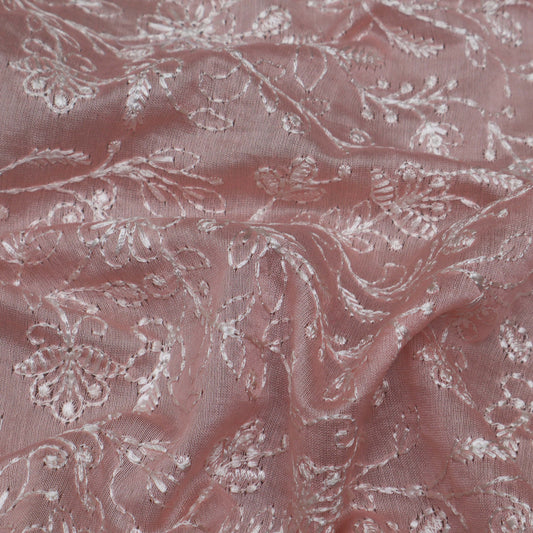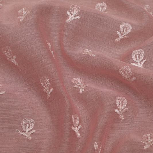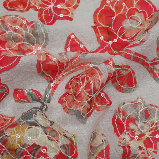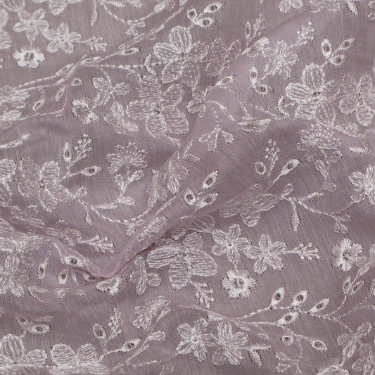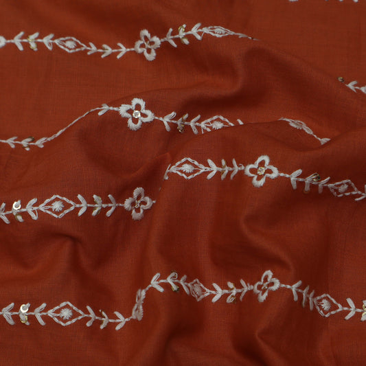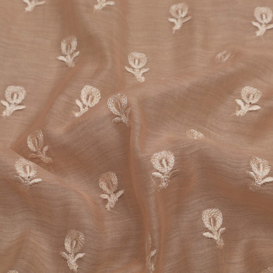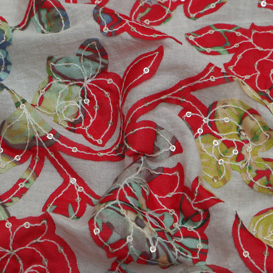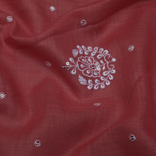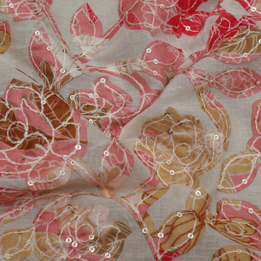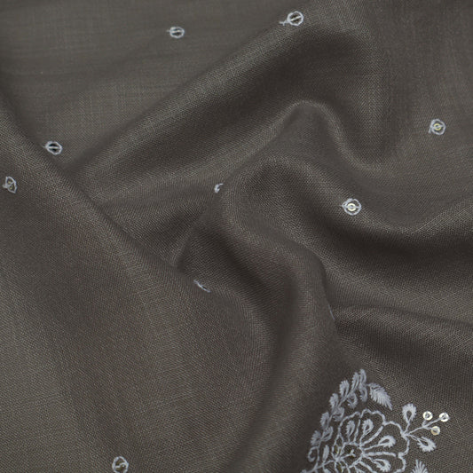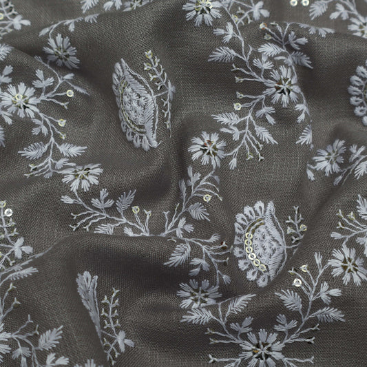Off White Color Flex Cotton Linen Embroidery Fabric
