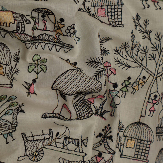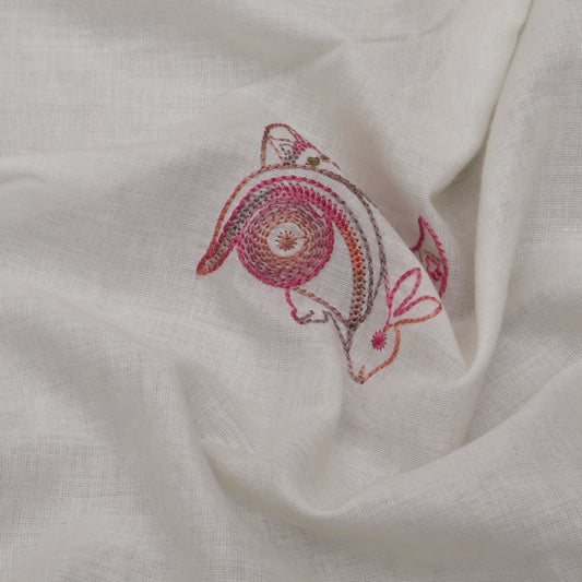 Off White Cotton Chikan Fabric