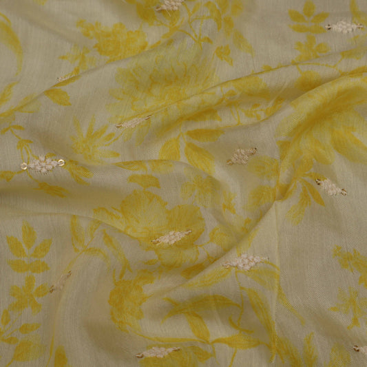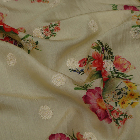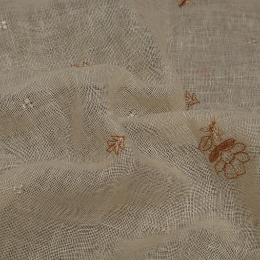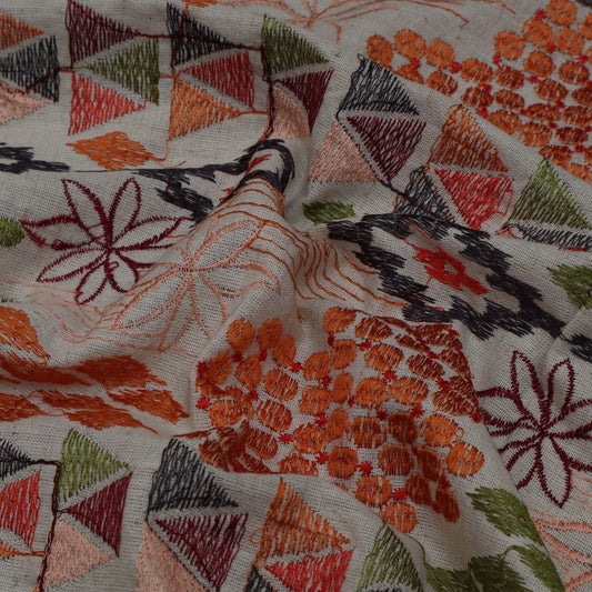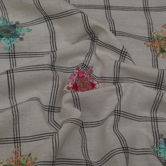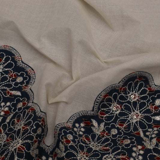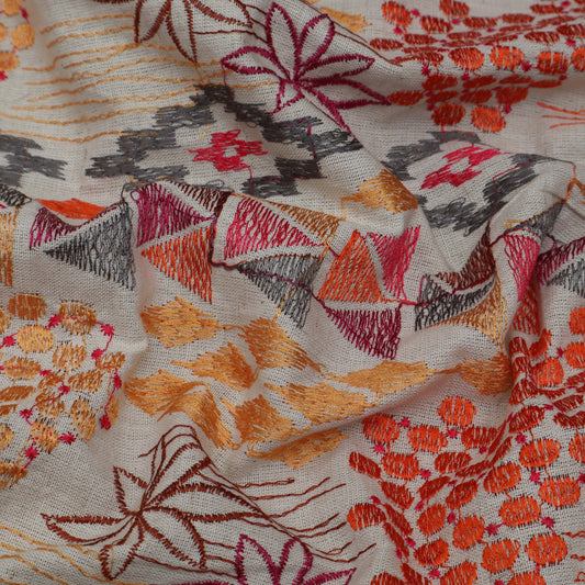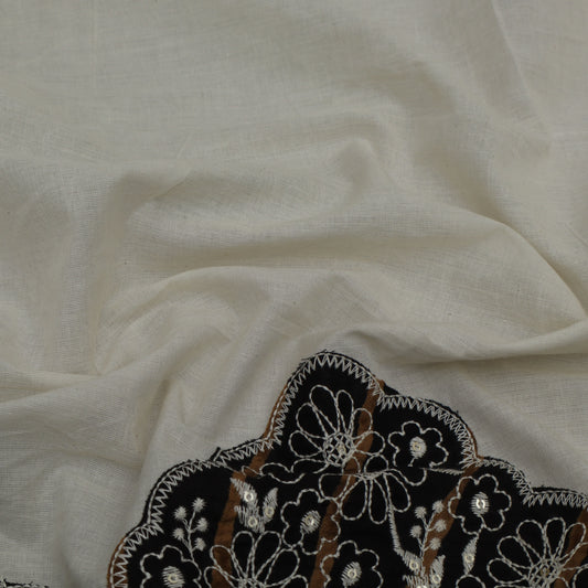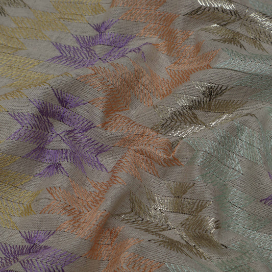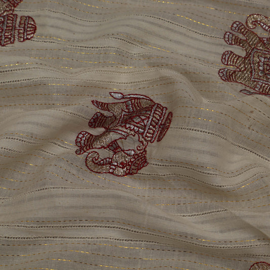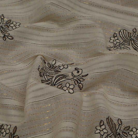 Off White Cotton Chanderi Embroidery Fabric