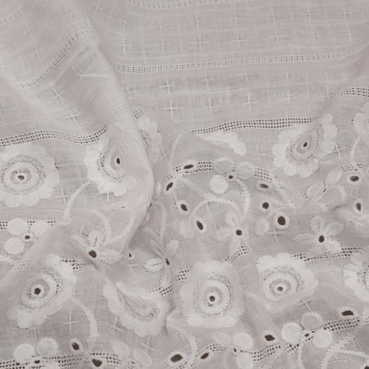 White Color Cotton Embroidery Fabric