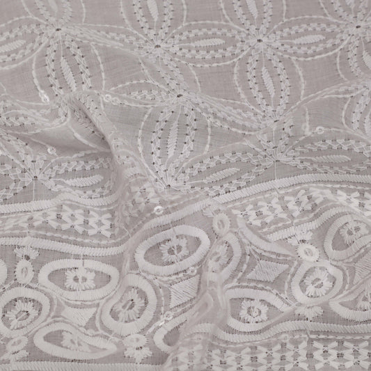 Sold outWhite Color Cotton Chikan Fabric